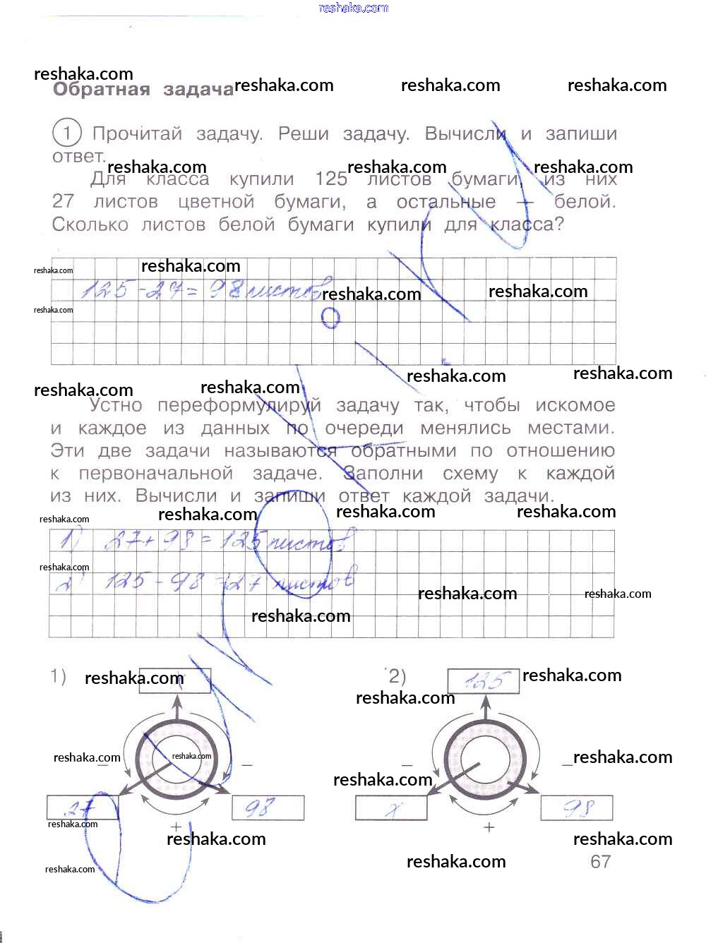 Решака - онлайн ответы Математика Захарова, Юдина за 2 класс Тетрадь для самостоятельной работы ФГОС 2016 - 67