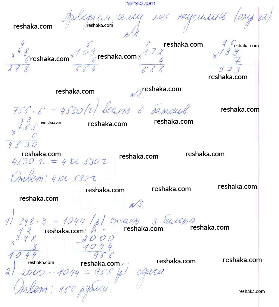 Решака - онлайн ответы Математика Башмаков, Нефедова за 3 класс Учебник ФГОС 2013 - стр. 82