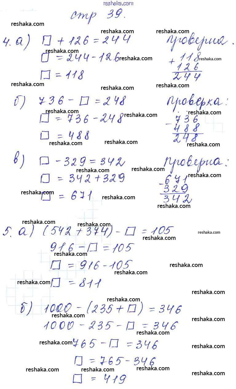 Решака - онлайн ответы Математика Башмаков, Нефедова за 3 класс Рабочая тетрадь ФГОС 2016 - 39