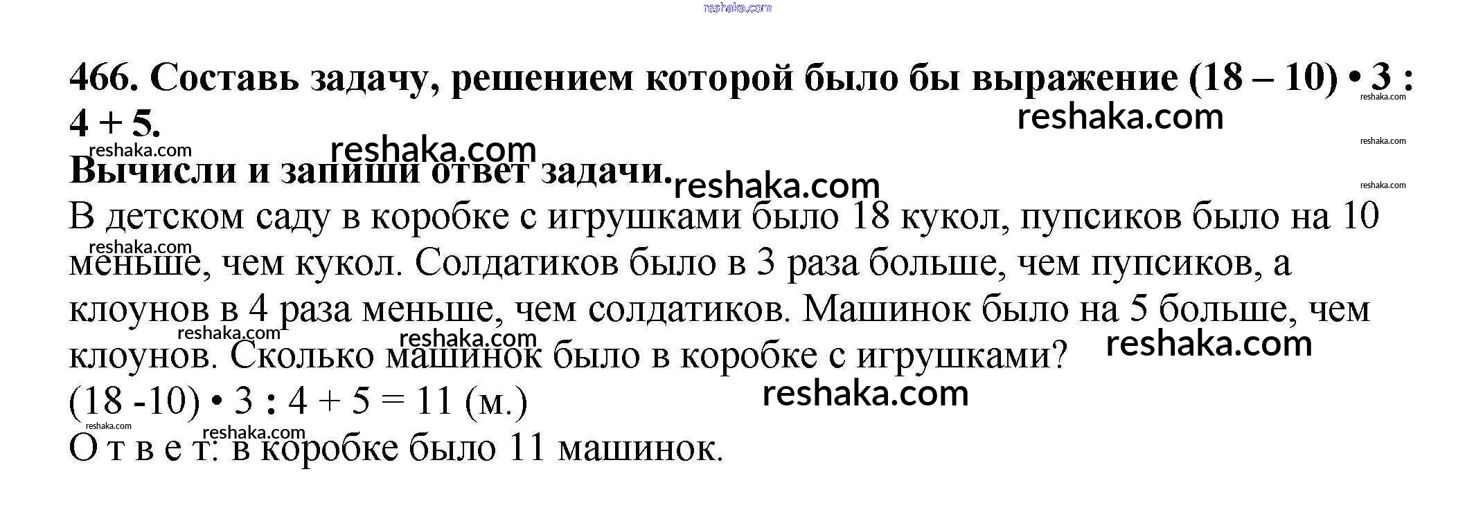Решака - онлайн ответы Математика Чекин за 3 класс Учебник ФГОС 2016 - 466