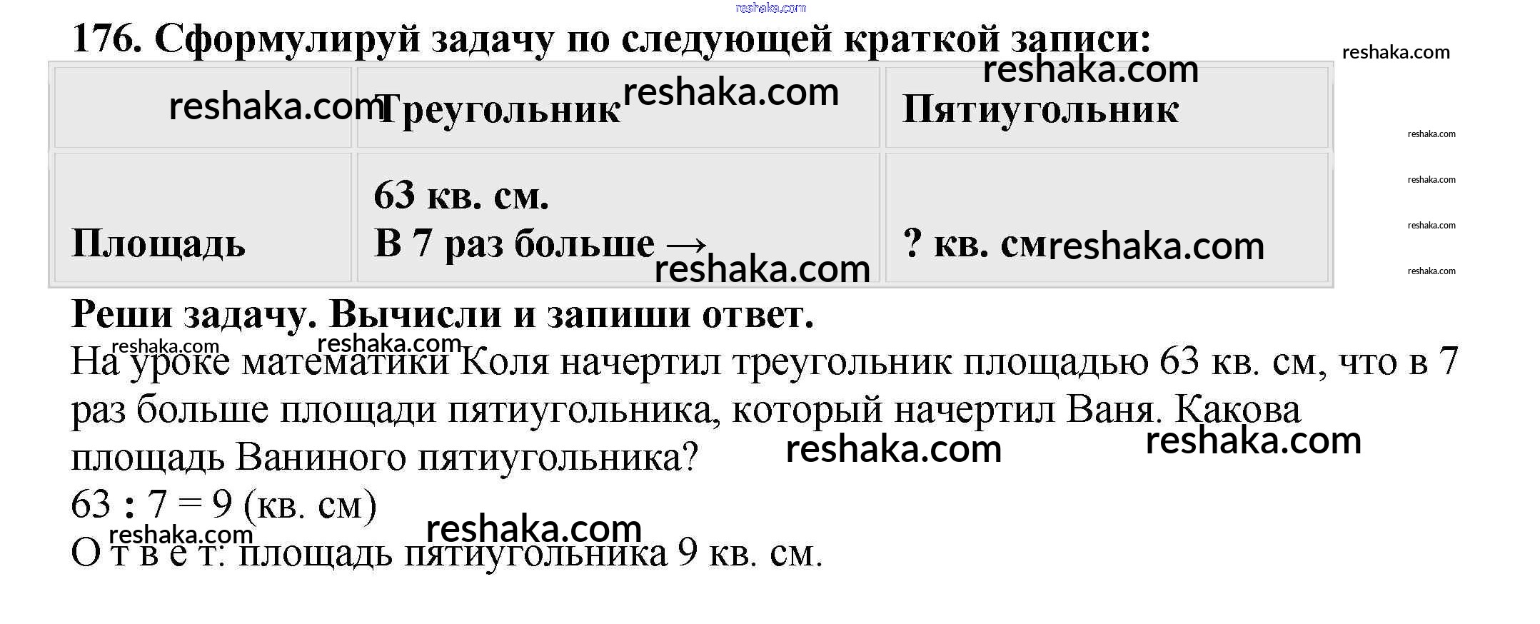 Решака - онлайн ответы Математика Чекин за 3 класс Учебник ФГОС 2016 - 176
