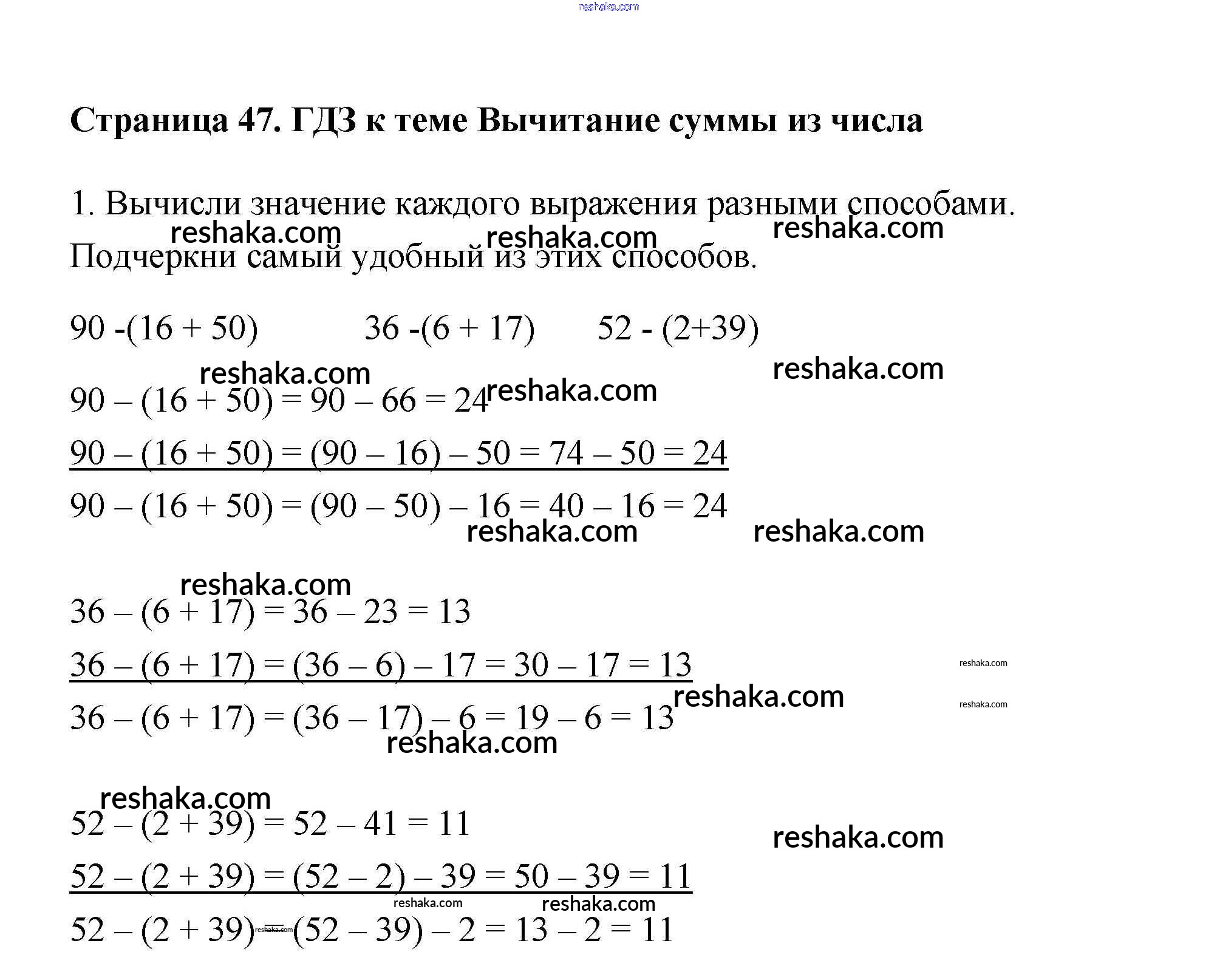Представляем вам сборники по Математике, с готовыми ответами к Учебнику Дорофеев школьной программы для учеников третий класса. Это не просто гдз с ответом, а с подсказками, как верно решить Страница 47 Часть 1 1. Проверяй домашку с умом и получай высший балл!