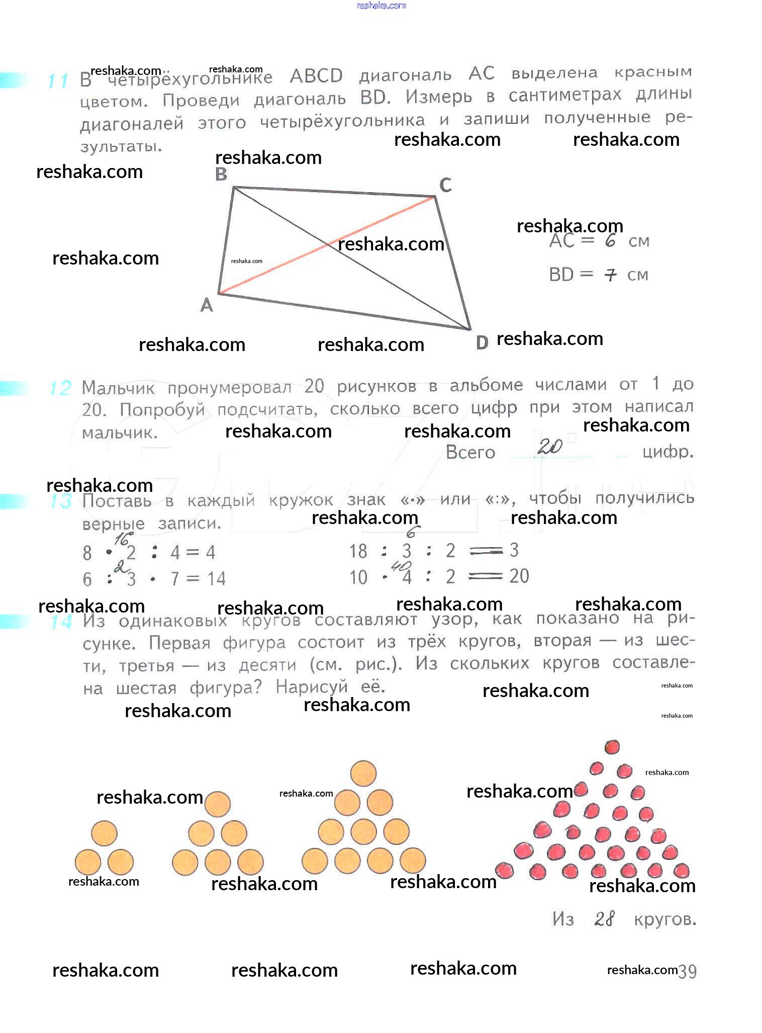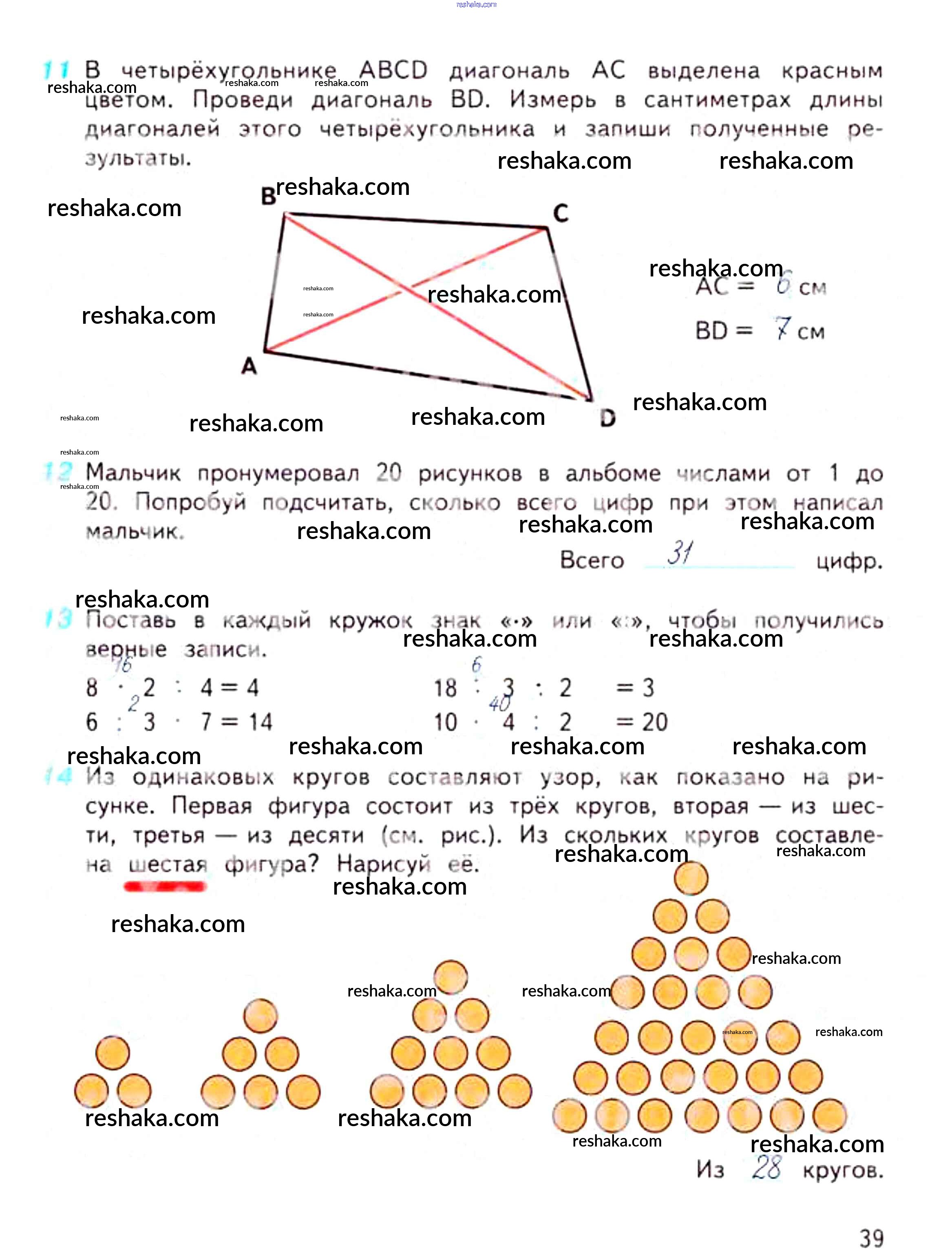 Решака - онлайн ответы Математика Дорофеев, Миракова за 3 класс Рабочая тетрадь ФГОС 2017 - 39