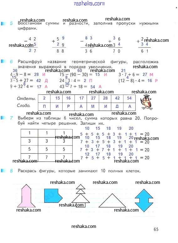 Решака - онлайн ответы Математика Дорофеев, Миракова за 3 класс Рабочая тетрадь ФГОС 2017 - 65