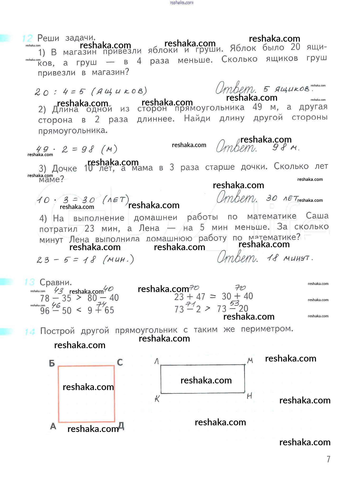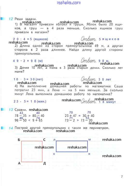 Решака - онлайн ответы Математика Дорофеев, Миракова за 3 класс Рабочая тетрадь ФГОС 2017 - 7