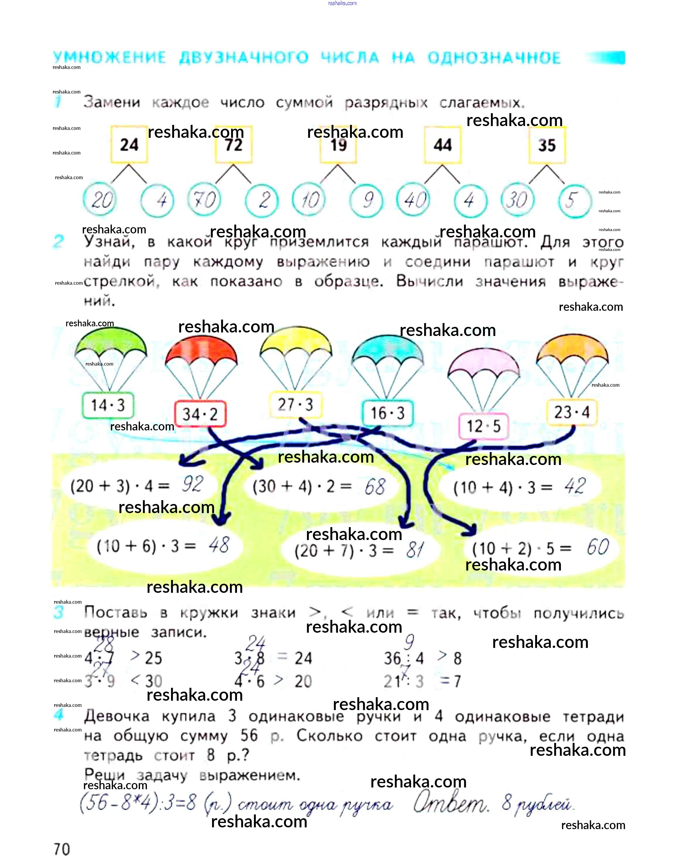 Решака - онлайн ответы Математика Дорофеев, Миракова за 3 класс Рабочая тетрадь ФГОС 2017 - 70