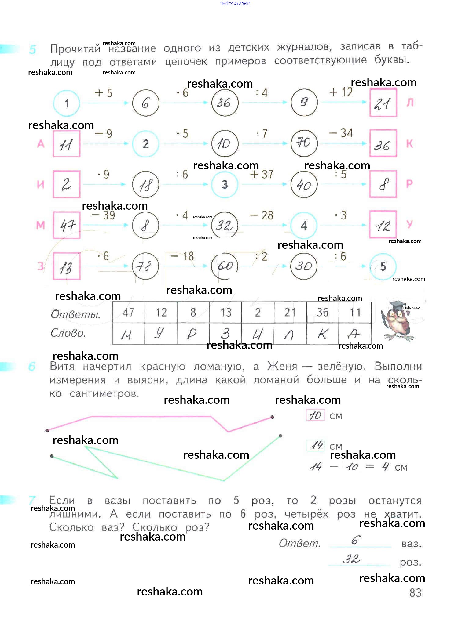 Решака - онлайн ответы Математика Дорофеев, Миракова за 3 класс Рабочая тетрадь ФГОС 2017 - 83