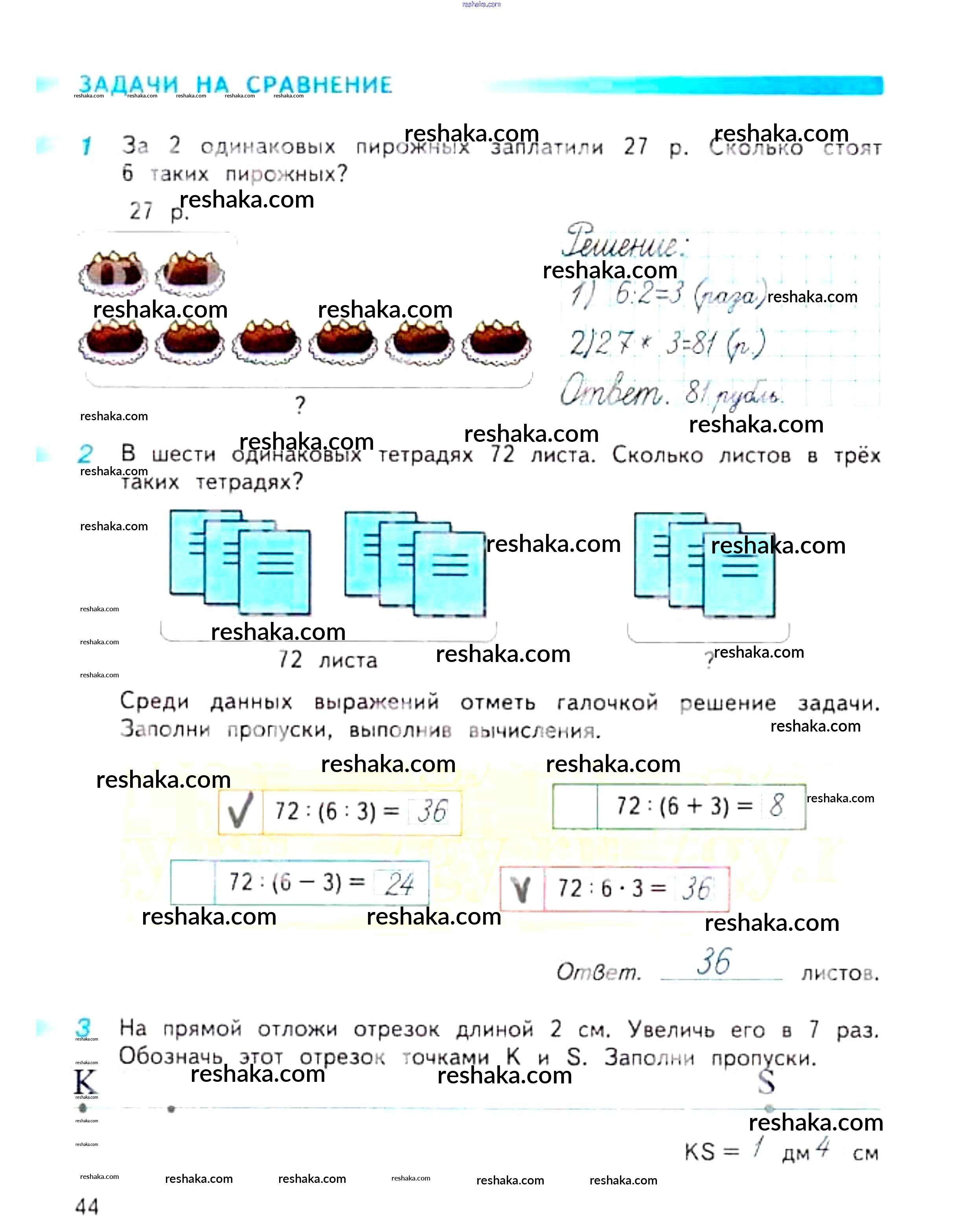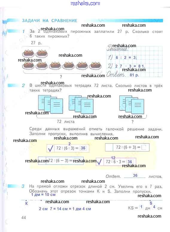 Решака - онлайн ответы Математика Дорофеев, Миракова за 3 класс Рабочая тетрадь ФГОС 2017 - 44