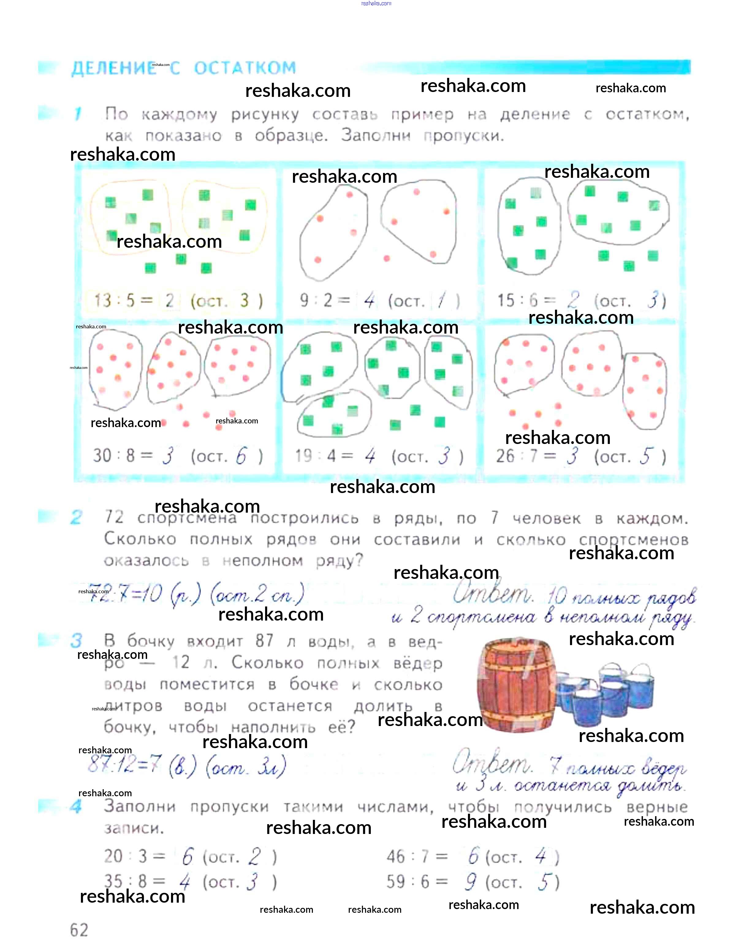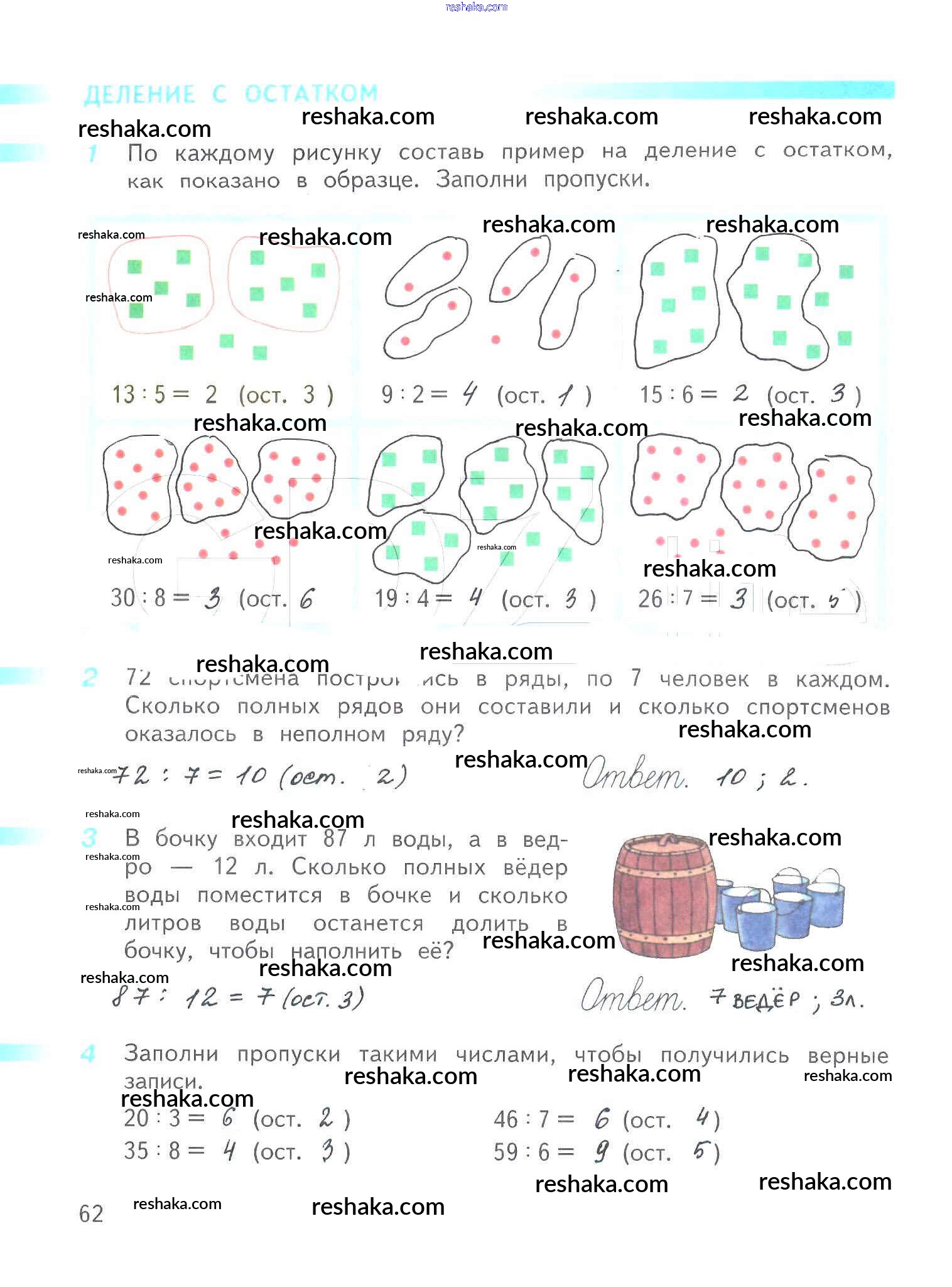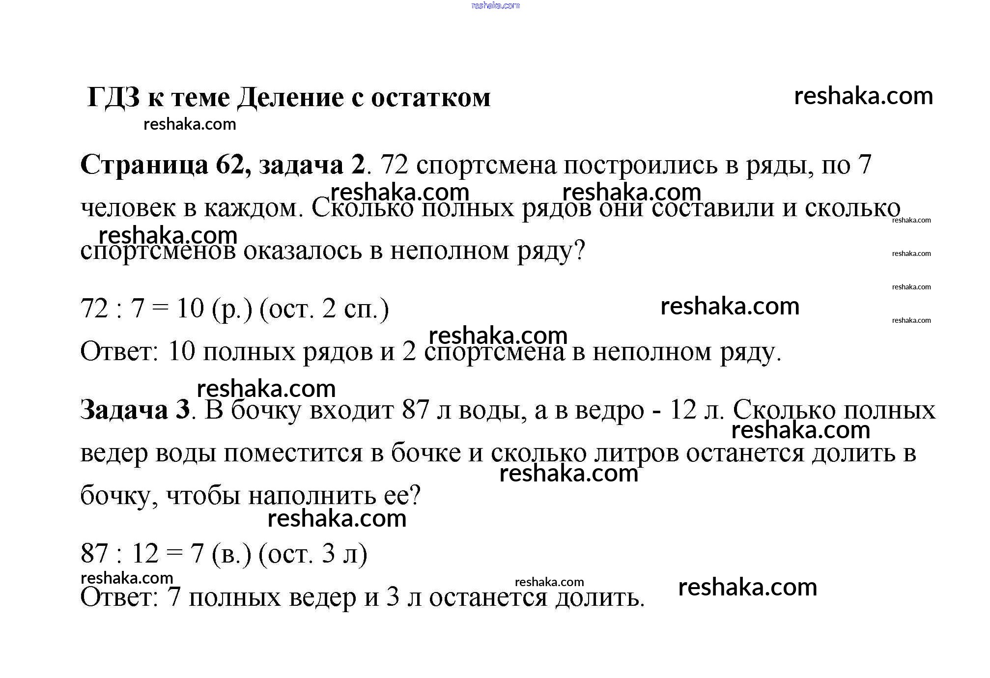 Решака - онлайн ответы Математика Дорофеев, Миракова за 3 класс Рабочая тетрадь ФГОС 2017 - 62