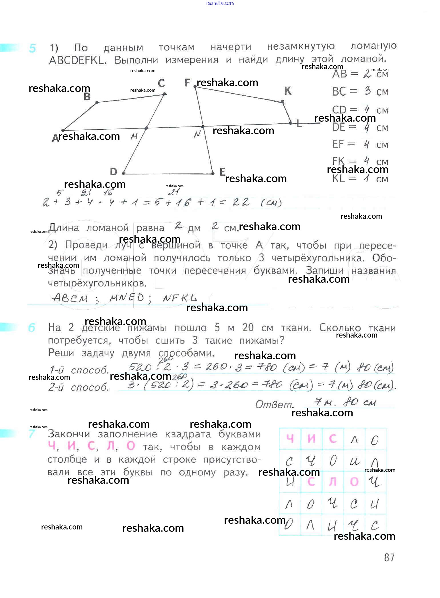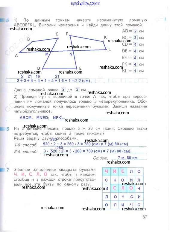 Решака - онлайн ответы Математика Дорофеев, Миракова за 3 класс Рабочая тетрадь ФГОС 2017 - 87