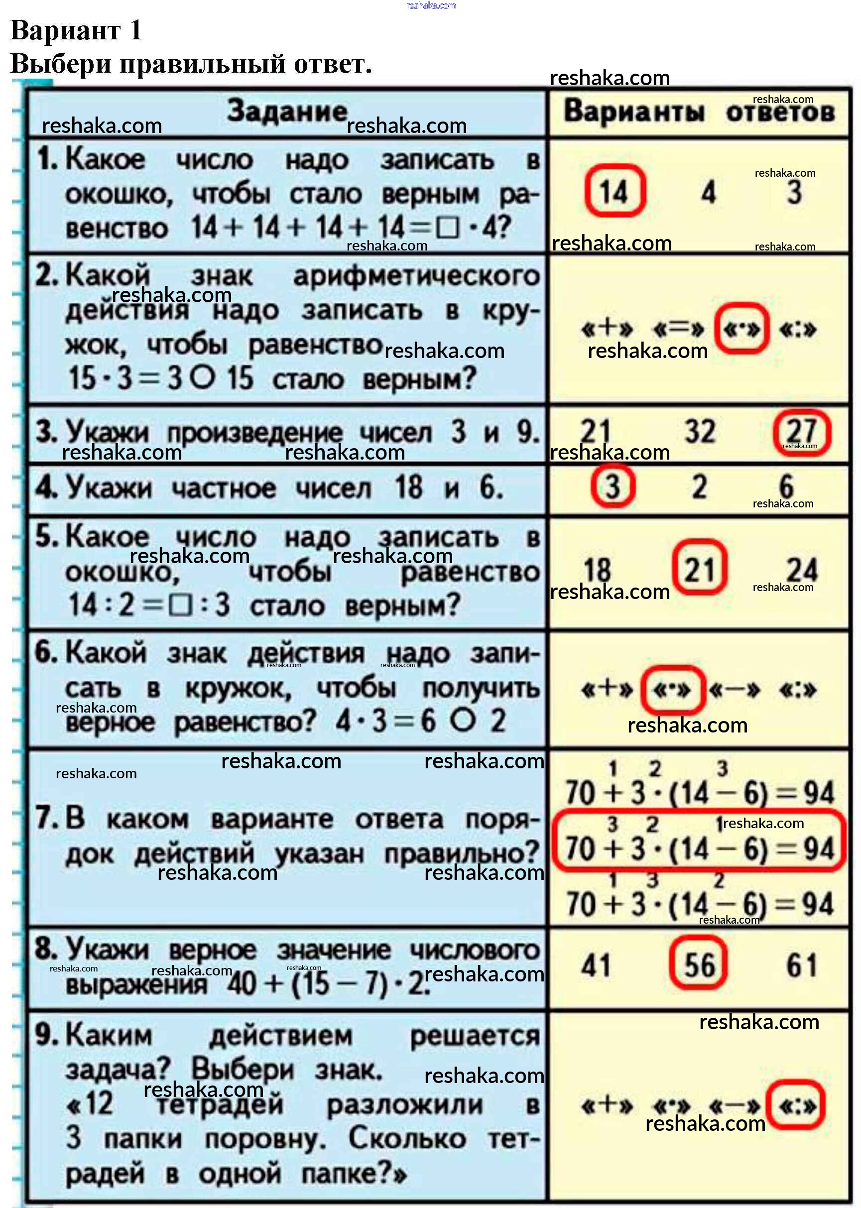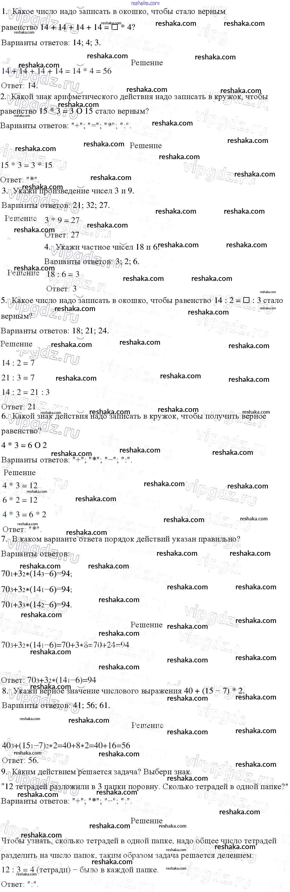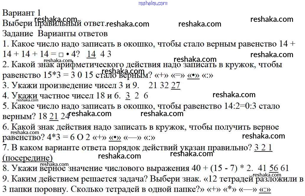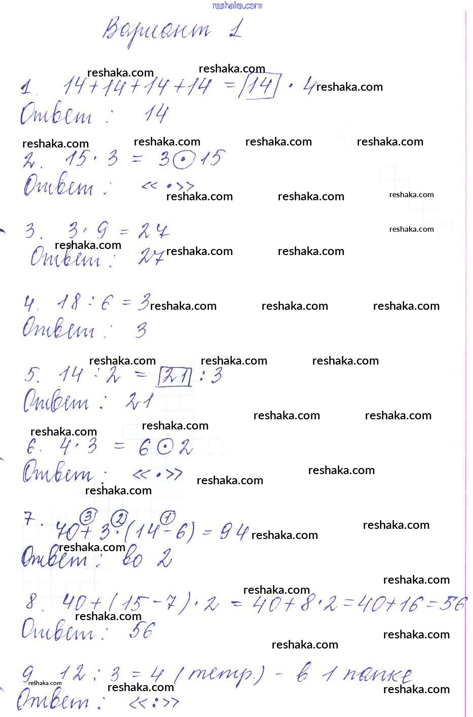 Решака - онлайн ответы Математика Моро, Бантова за 3 класс Учебник ФГОС 2015 - Вариант 1