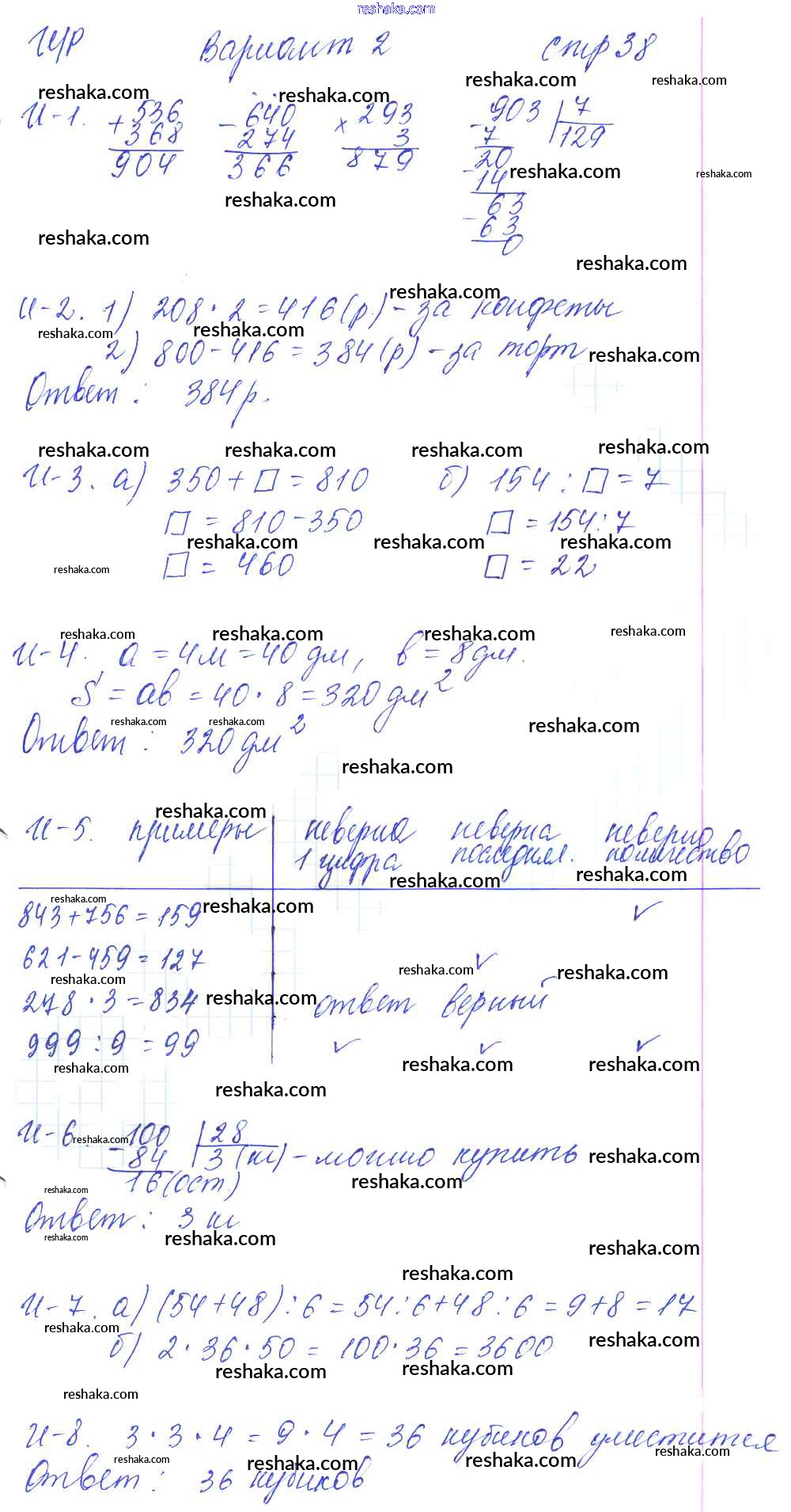 Решака - онлайн ответы Математика Башмаков, Нефедова за 3 класс Контрольные и диагностические работы ФГОС 2018 - вариант 2