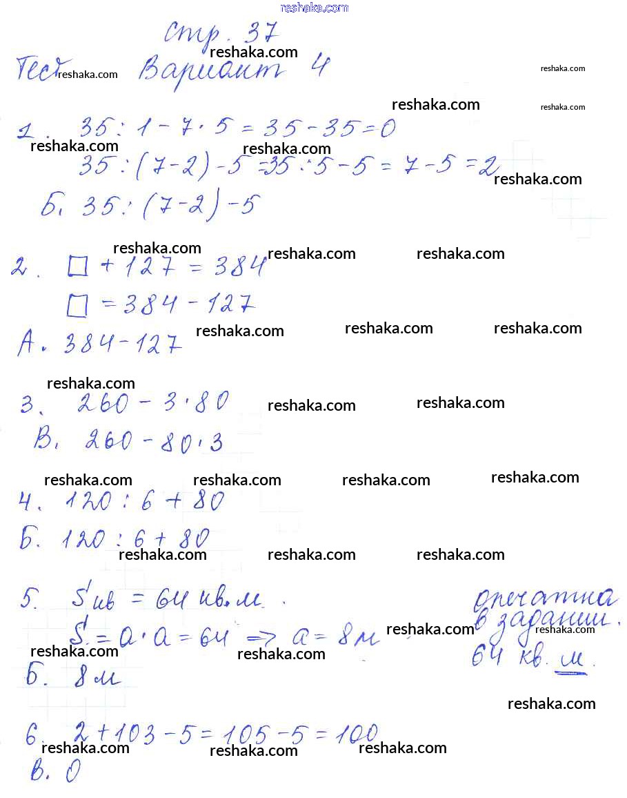 Решака - онлайн ответы Математика Нефедова за 3 класс Тесты и самостоятельные работы для текущего контроля ФГОС 2017 - 37