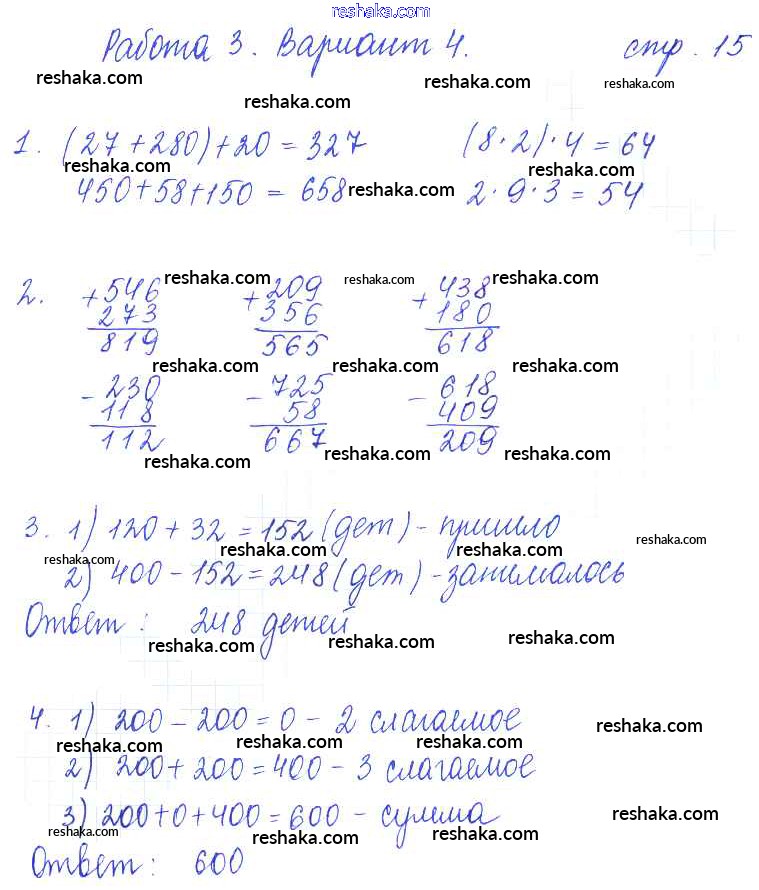 Решака - онлайн ответы Математика Рудницкая, Юдачева за 3 класс Тетрадь для контрольных работ ФГОС 2017 - 15
