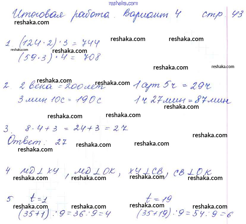 Решака - онлайн ответы Математика Рудницкая, Юдачева за 3 класс Тетрадь для контрольных работ ФГОС 2017 - 43