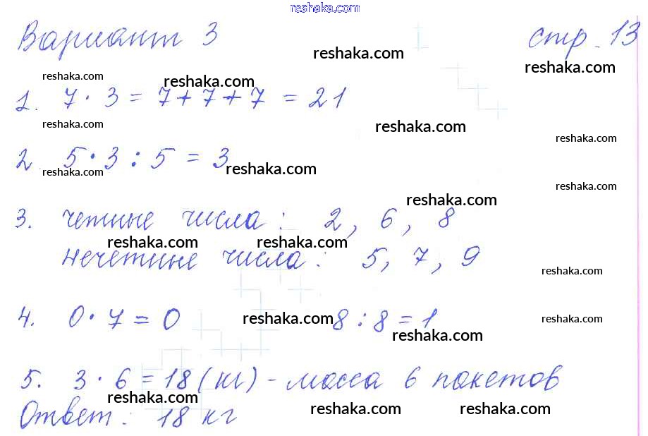 Решака - онлайн ответы Математика Рудницкая за 3 класс Контрольные работы ФГОС 2017 - 13