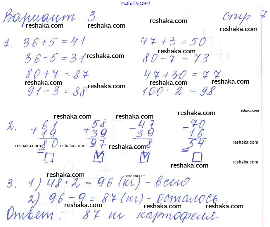 Решака - онлайн ответы Математика Рудницкая за 3 класс Контрольные работы ФГОС 2017 - 7