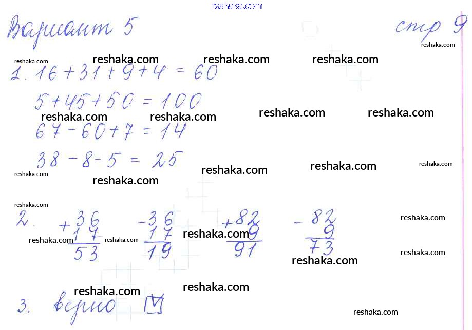 Решака - онлайн ответы Математика Рудницкая за 3 класс Контрольные работы ФГОС 2017 - 9