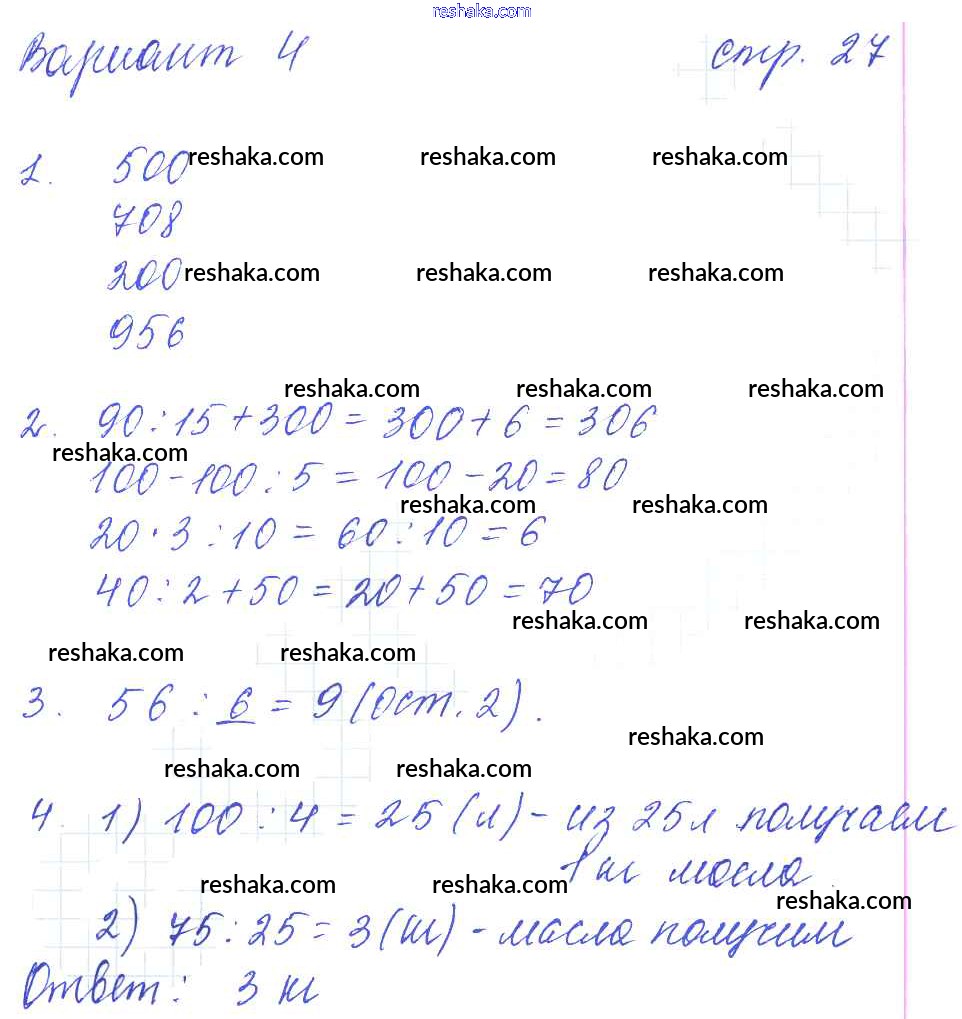 Решака - онлайн ответы Математика Рудницкая за 3 класс Контрольные работы ФГОС 2017 - 27