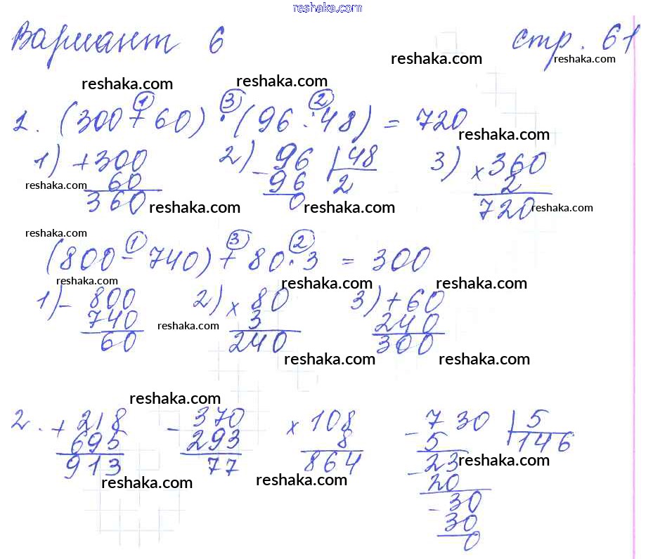 Решака - онлайн ответы Математика Рудницкая за 3 класс Контрольные работы ФГОС 2017 - 61