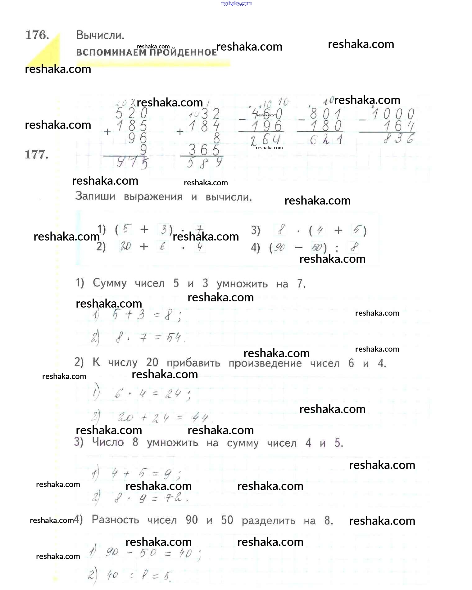 Решака - онлайн ответы Математика Рудницкая, Юдачева за 3 класс Рабочая тетрадь ФГОС 2017 - 177