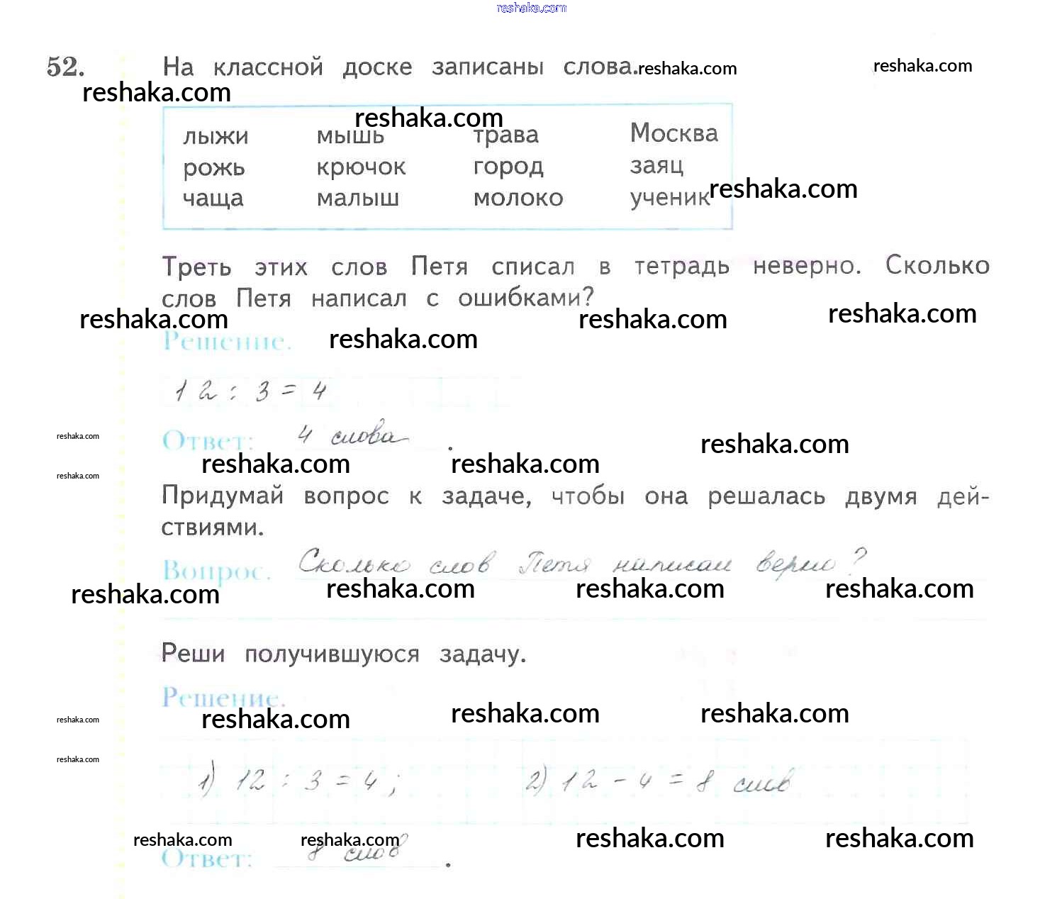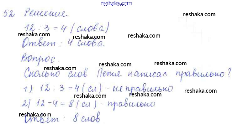 Решака - онлайн ответы Математика Рудницкая, Юдачева за 3 класс Рабочая тетрадь ФГОС 2017 - 52