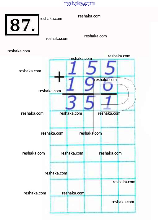 Представляем вам сборники по Математике, с готовыми ответами к Рабочей тетради Рудницкая школьной программы для учеников третий класса. Это не просто гдз с ответом, а с подсказками, как верно решить Часть 1. Упражнения 87. Проверяй домашку с умом и получай высший балл!