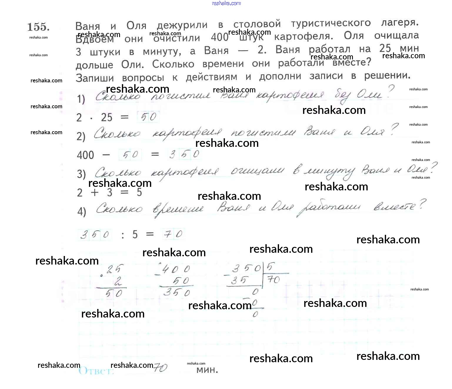 Решака - онлайн ответы Математика Рудницкая, Юдачева за 3 класс Рабочая тетрадь ФГОС 2017 - 155