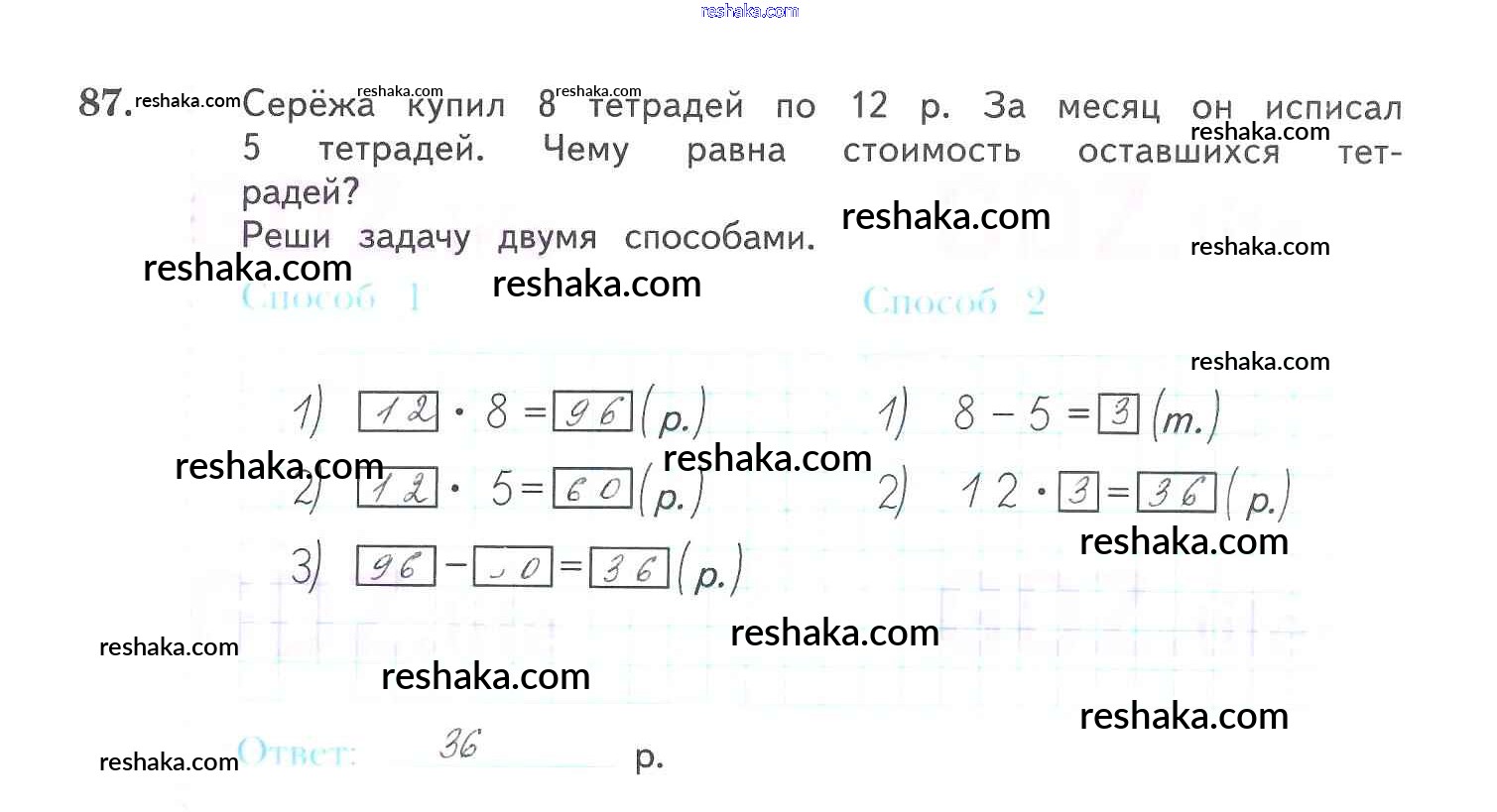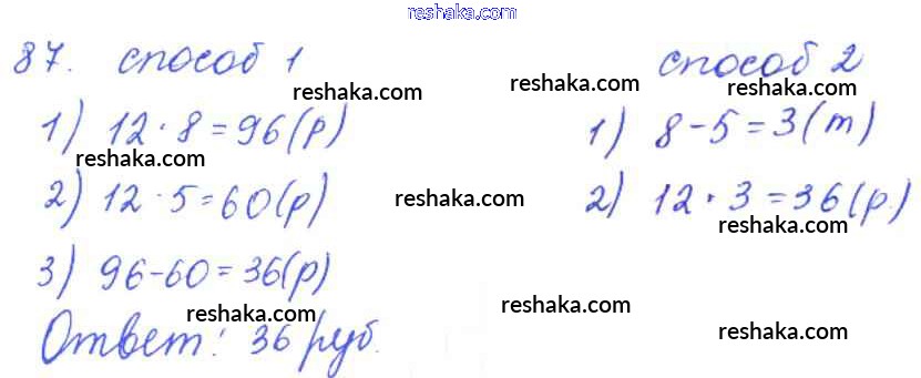 Решака - онлайн ответы Математика Рудницкая, Юдачева за 3 класс Рабочая тетрадь ФГОС 2017 - 87