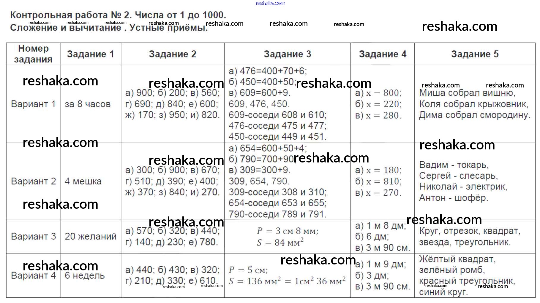 Решака - онлайн ответы Математика Ситникова за 3 класс Контрольно-измерительные материалы (КИМ) ФГОС 2017 - 2