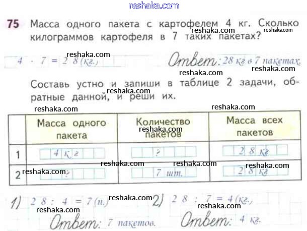 Решака - онлайн ответы Математика Моро, Волкова за 3 класс Рабочая тетрадь ФГОС 2016 - 75
