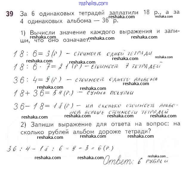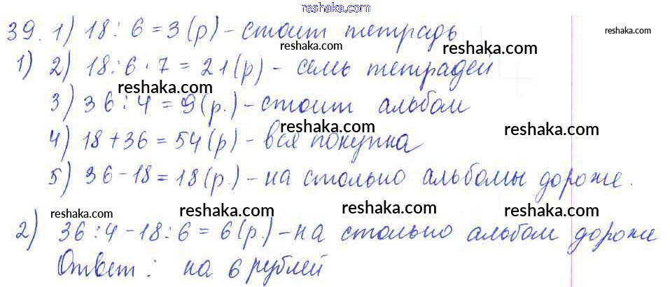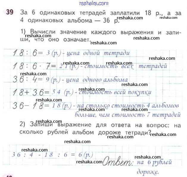 Решака - онлайн ответы Математика Моро, Волкова за 3 класс Рабочая тетрадь ФГОС 2016 - 39