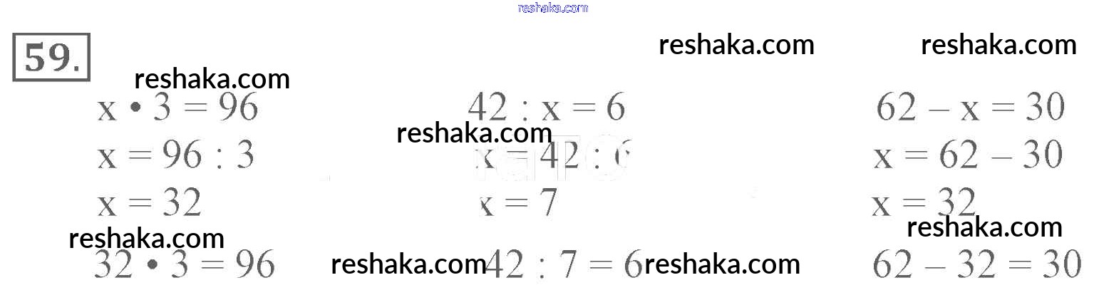 Представляем вам сборники по Математике, с готовыми ответами к Рабочей тетради Моро школьной программы для учеников третий класса. Это не просто гдз с ответом, а с подсказками, как верно решить Страница 3-38 (Внетабличное умножение и деление) Часть 2 59. Проверяй домашку с умом и получай высший балл!