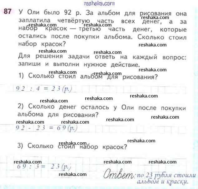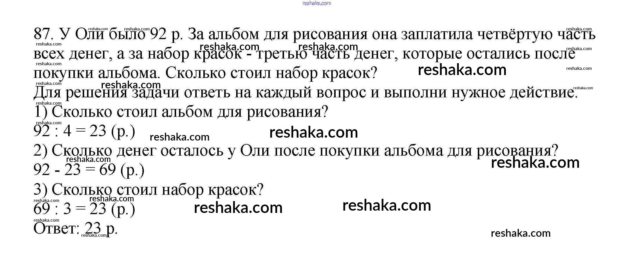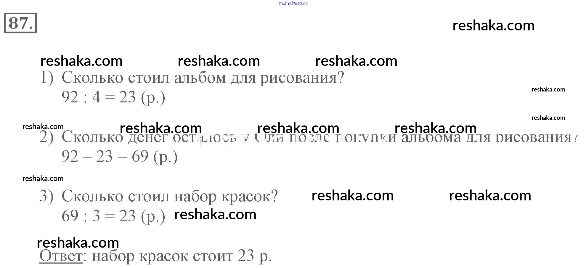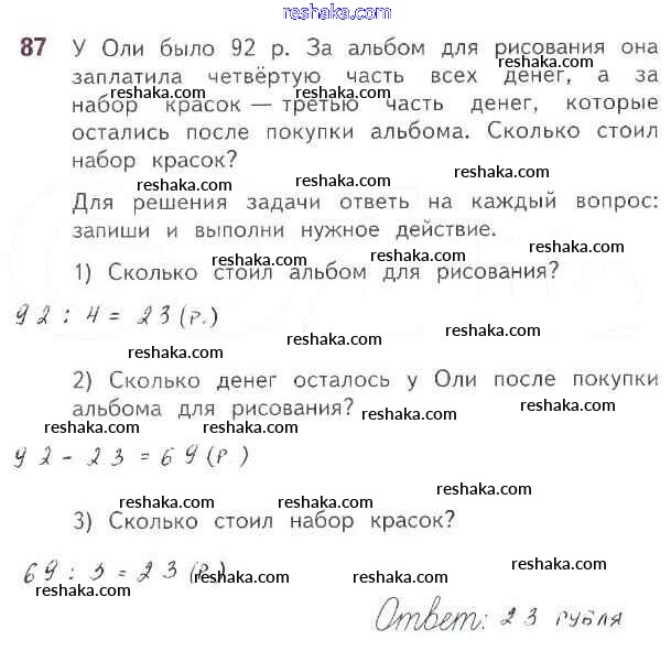 Решака - онлайн ответы Математика Моро, Волкова за 3 класс Рабочая тетрадь ФГОС 2016 - 87