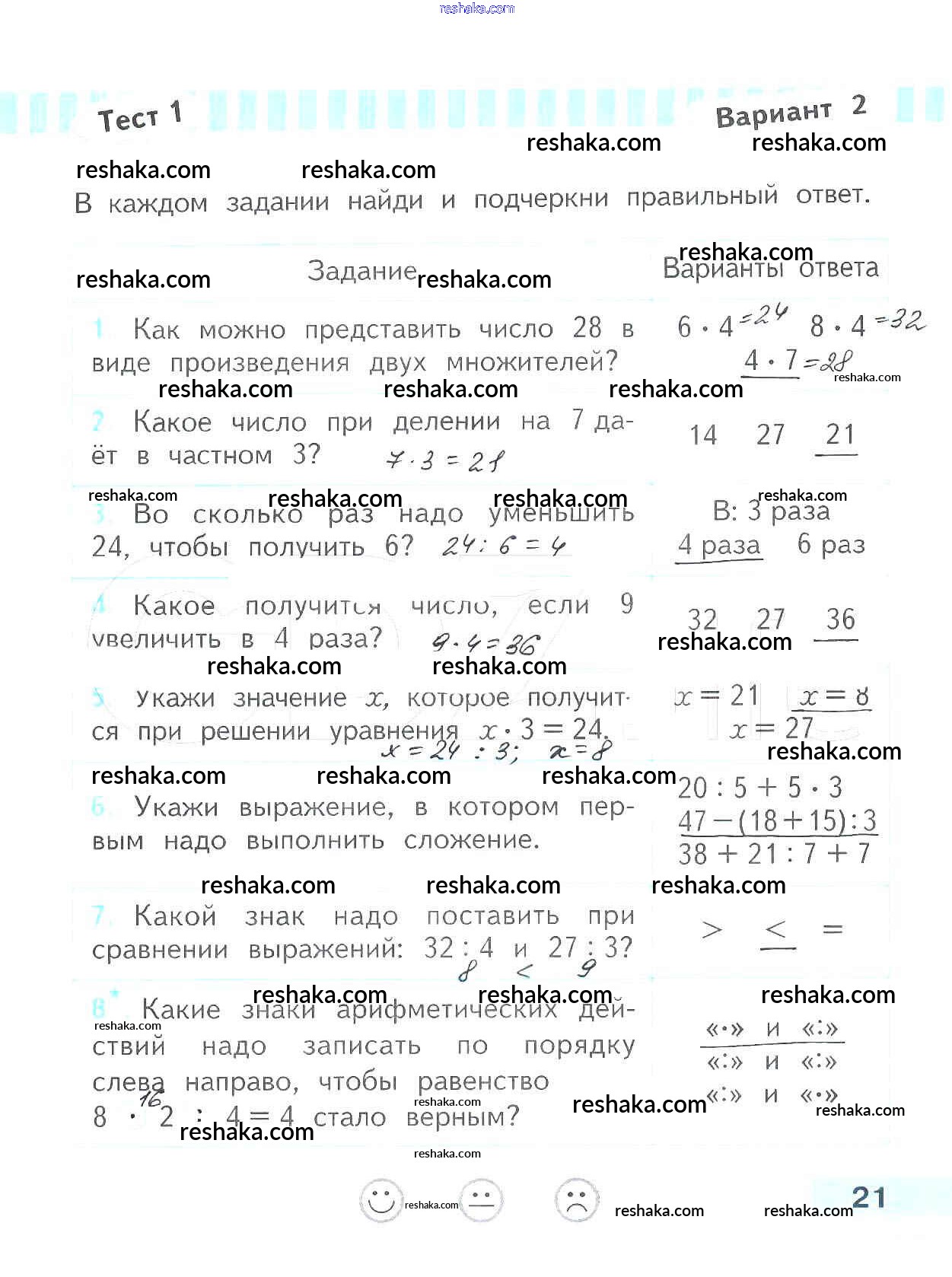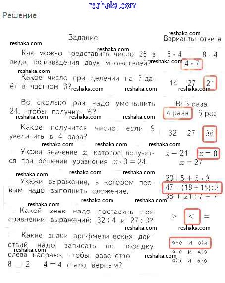 Решака - онлайн ответы Математика Волкова за 3 класс Проверочные работы ФГОС 2014 - 21