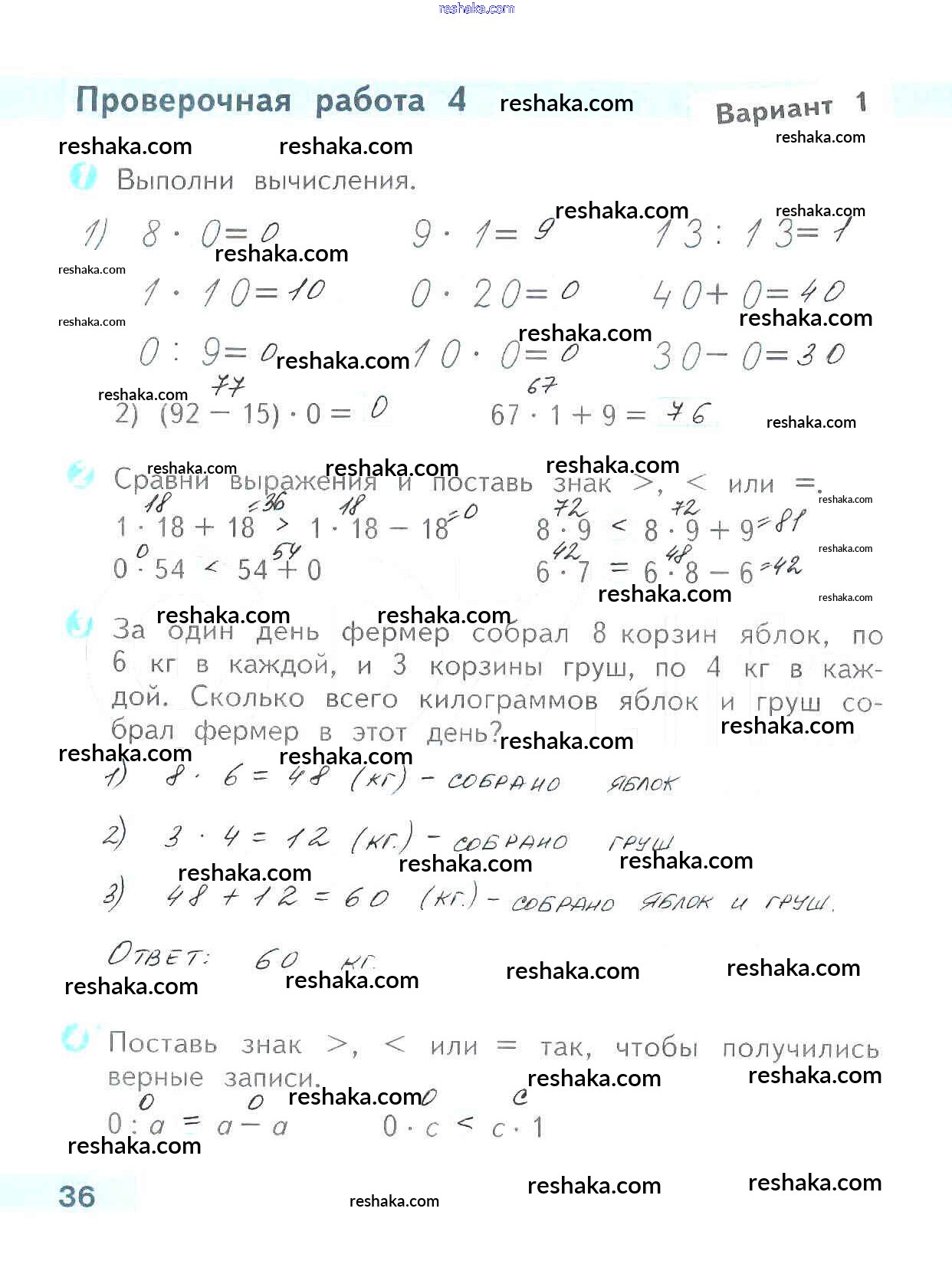 Решака - онлайн ответы Математика Волкова за 3 класс Проверочные работы ФГОС 2014 - 36
