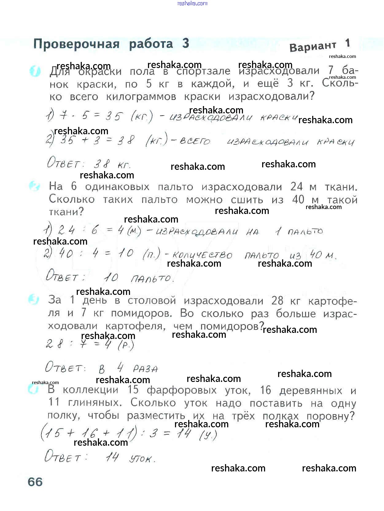 Решака - онлайн ответы Математика Волкова за 3 класс Проверочные работы ФГОС 2014 - 66
