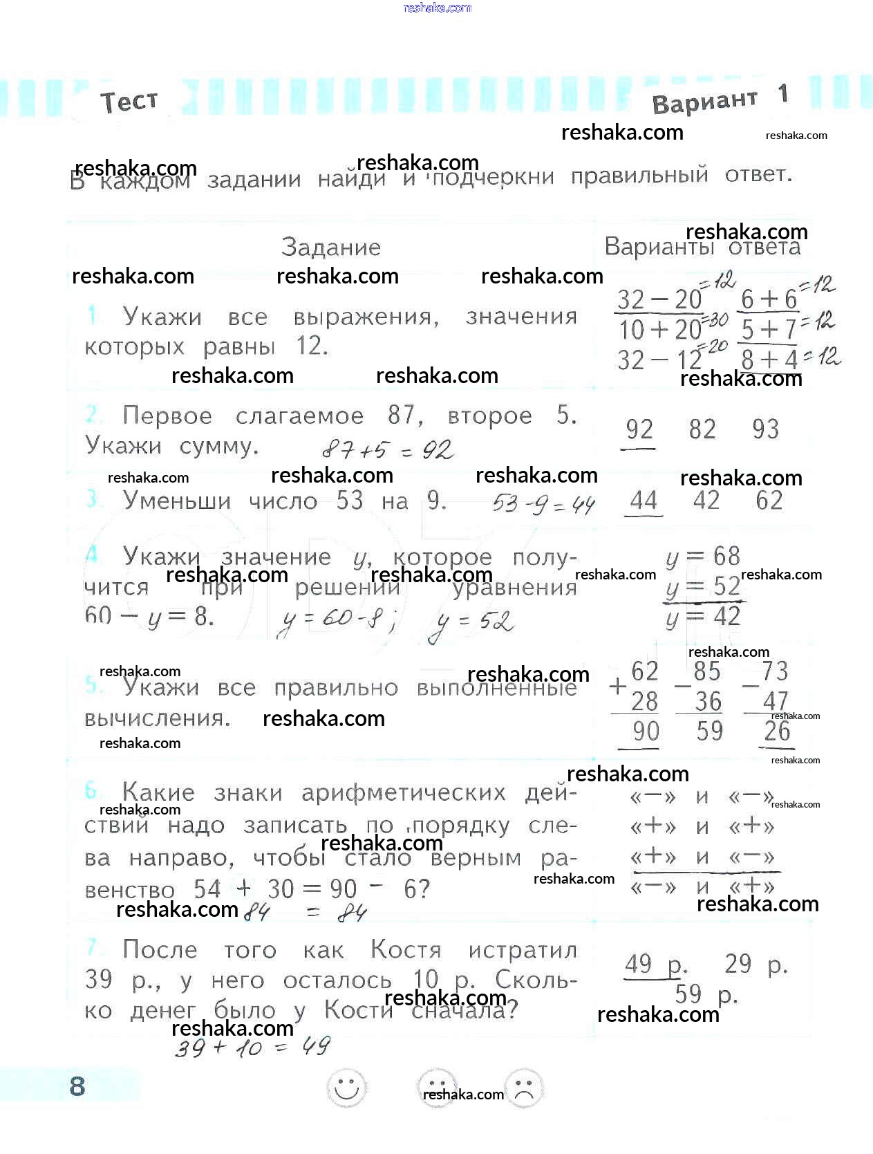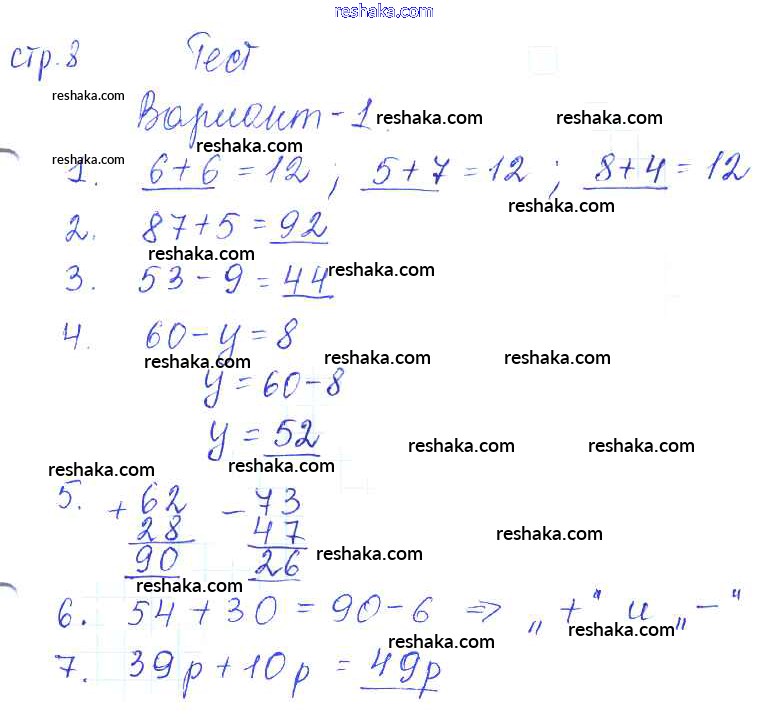 Решака - онлайн ответы Математика Волкова за 3 класс Проверочные работы ФГОС 2014 - 8