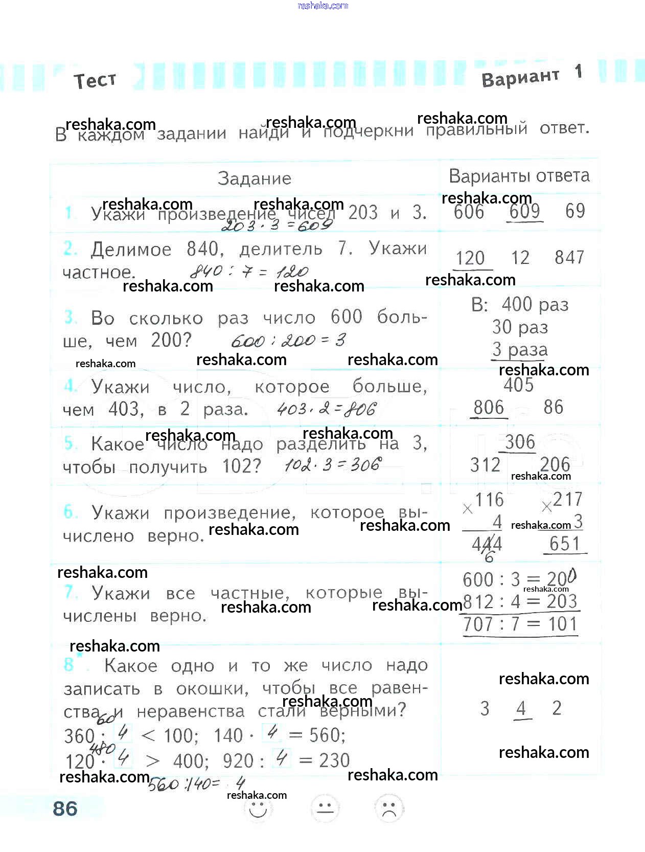 Решака - онлайн ответы Математика Волкова за 3 класс Проверочные работы ФГОС 2014 - 86