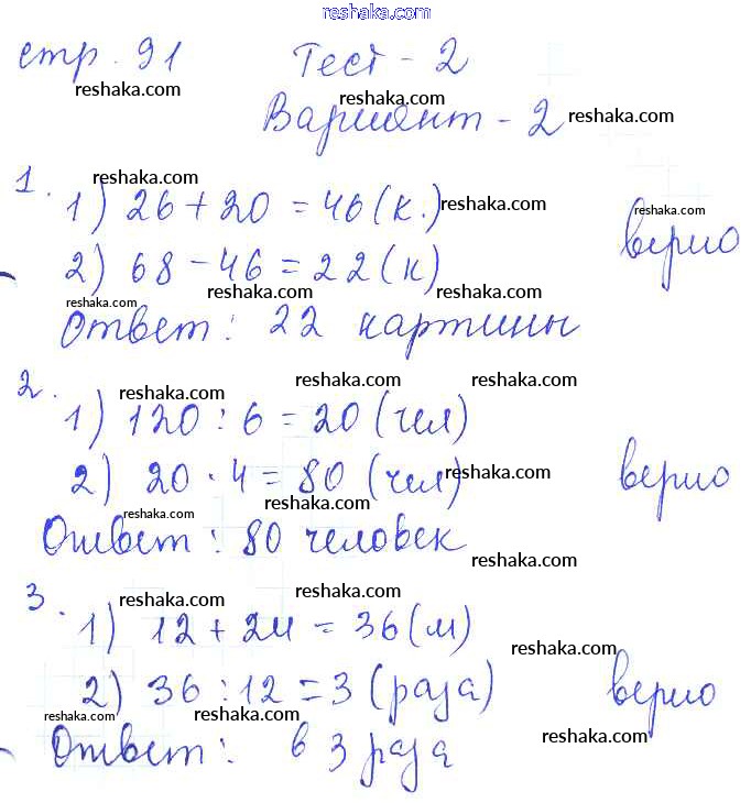 Решака - онлайн ответы Математика Волкова за 3 класс Проверочные работы ФГОС 2014 - 91