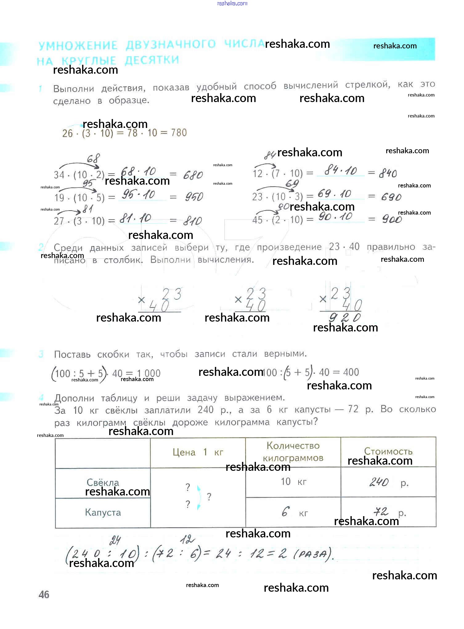 Решака - онлайн ответы Математика Дорофеев, Миракова за 4 класс Рабочая тетрадь ФГОС 2017 - 46