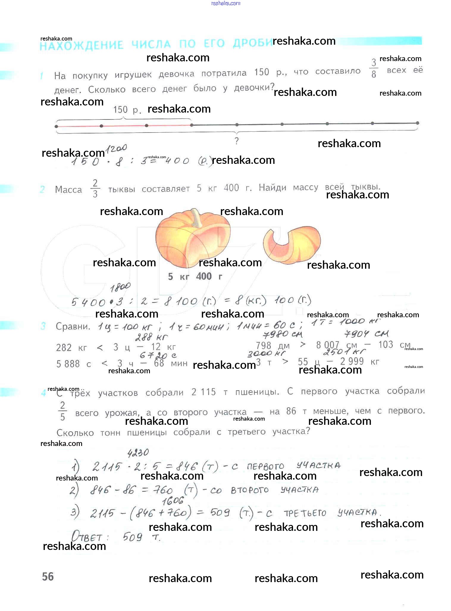Решака - онлайн ответы Математика Дорофеев, Миракова за 4 класс Рабочая тетрадь ФГОС 2017 - 56