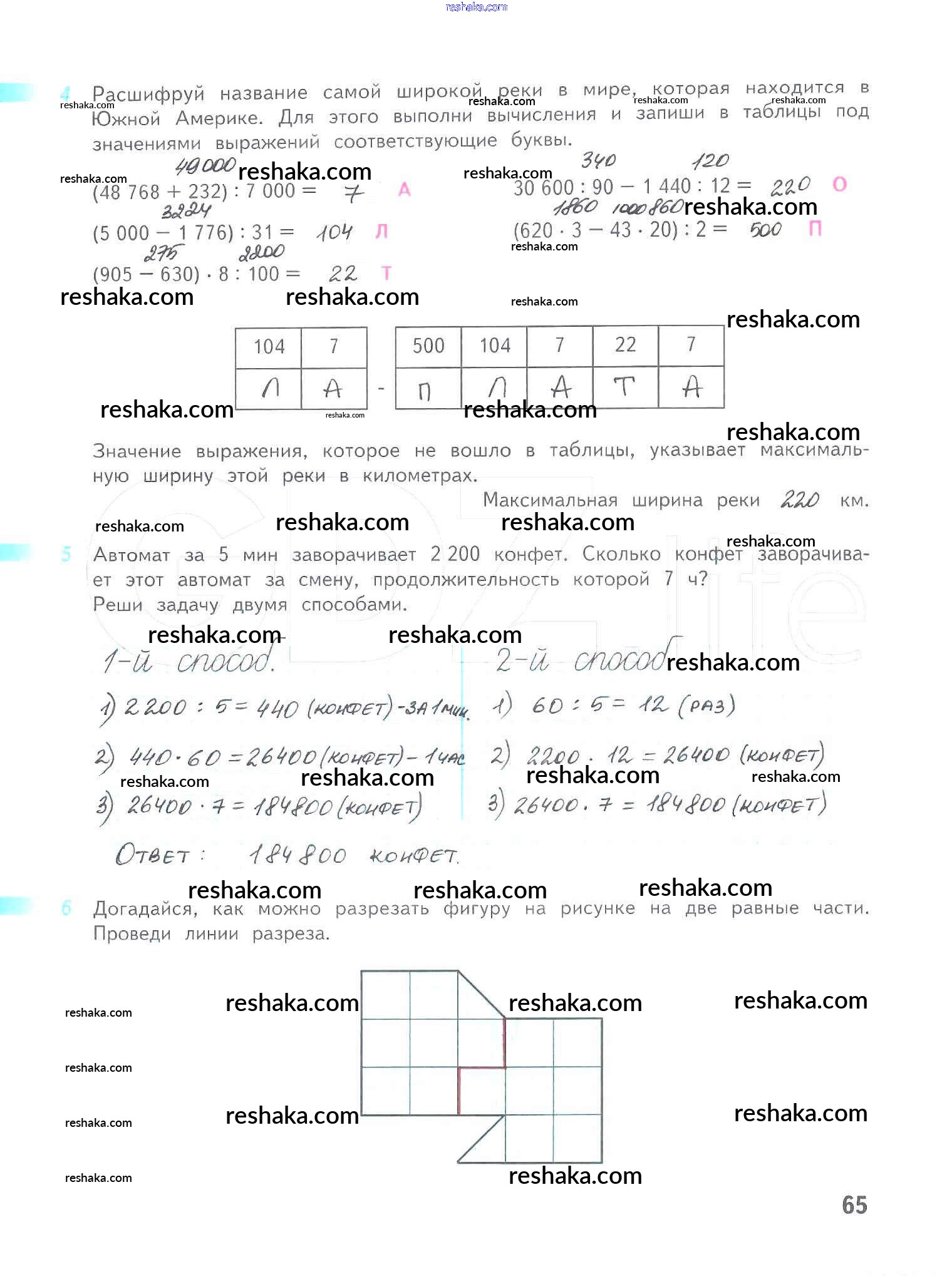 Решака - онлайн ответы Математика Дорофеев, Миракова за 4 класс Рабочая тетрадь ФГОС 2017 - 65