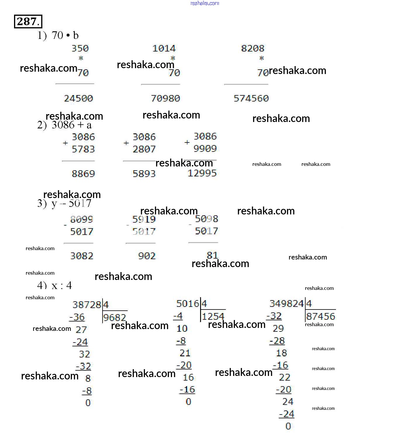 Решака - онлайн ответы Математика Истомина за 4 класс Учебник ФГОС 2014 - 287