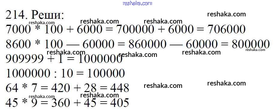 Решака - онлайн ответы Математика Моро, Бантова за 4 класс Учебник ФГОС 2015 - 214