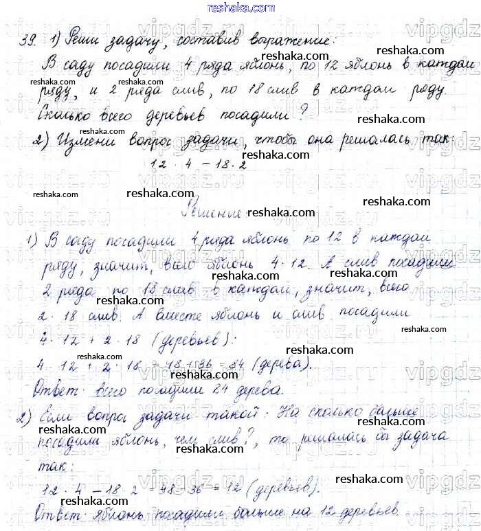 Решака - онлайн ответы Математика Моро, Бантова за 4 класс Учебник ФГОС 2015 - 39