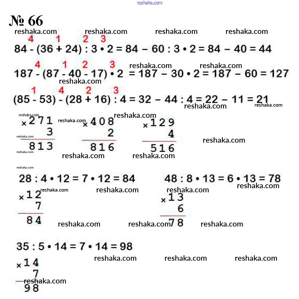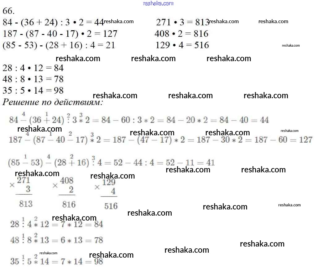 Решака - онлайн ответы Математика Моро, Бантова за 4 класс Учебник ФГОС 2015 - 66