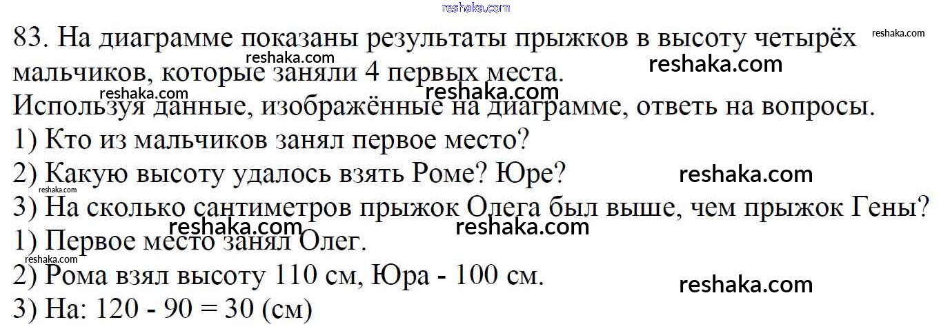 Представляем вам сборники по Математике, с готовыми ответами к Учебнику Моро школьной программы для учеников четвертый класса. Это не просто гдз с ответом, а с подсказками, как верно решить Упражнения Часть 1 83. Проверяй домашку с умом и получай высший балл!