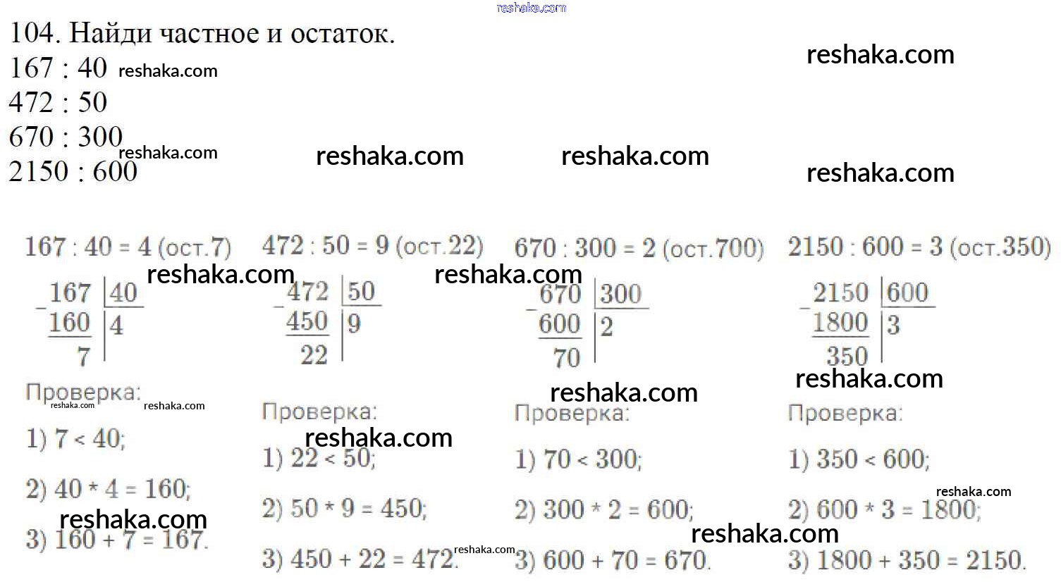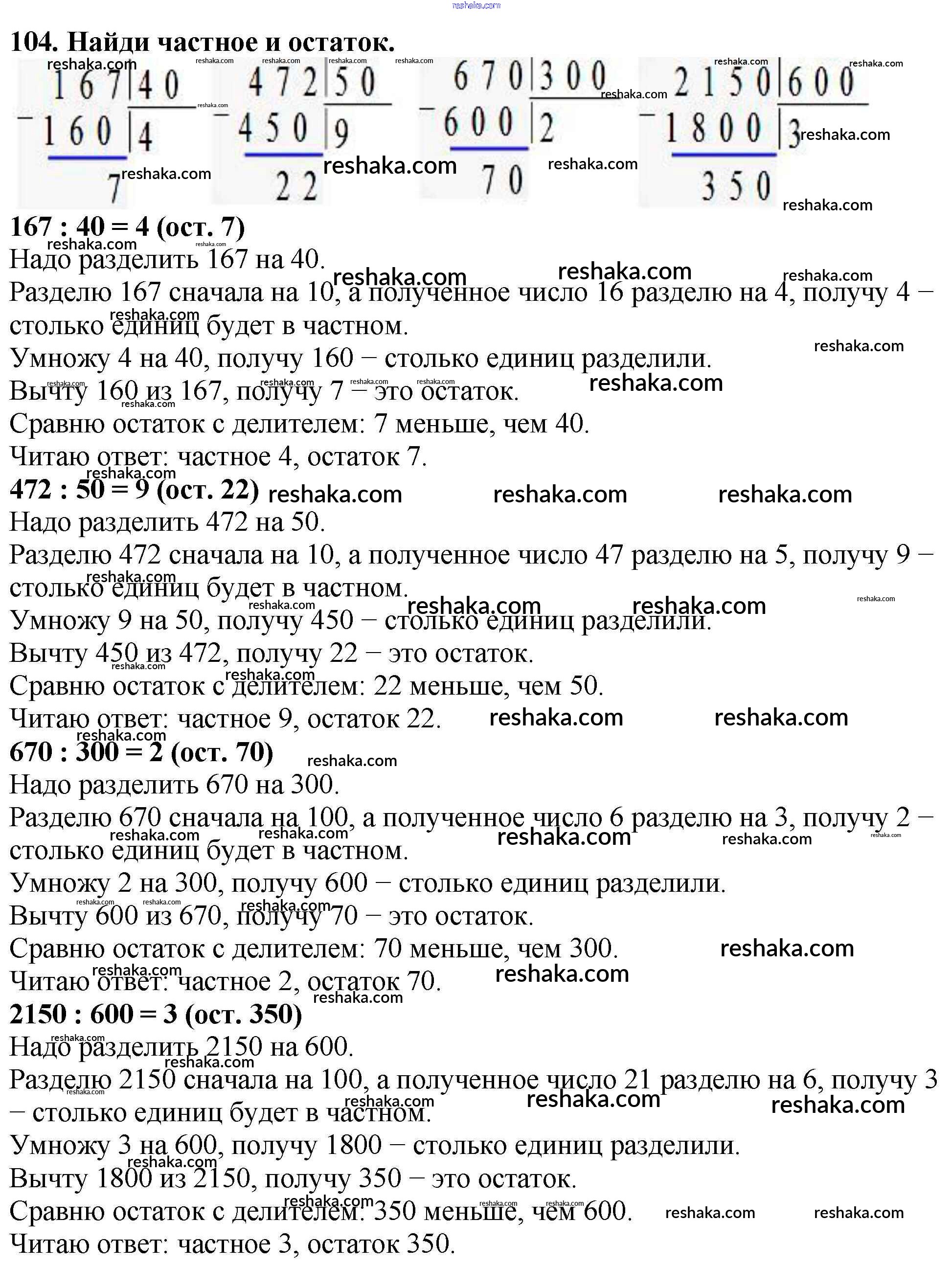 Решака - онлайн ответы Математика Моро, Бантова за 4 класс Учебник ФГОС 2015 - 104