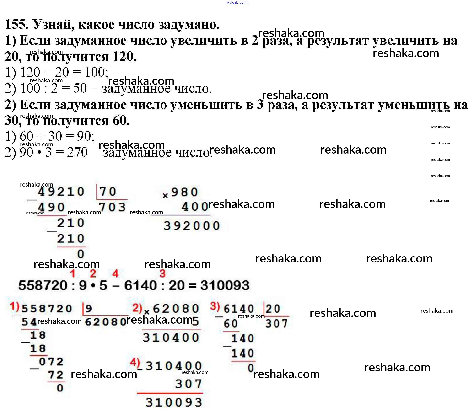 Решака - онлайн ответы Математика Моро, Бантова за 4 класс Учебник ФГОС 2015 - 155